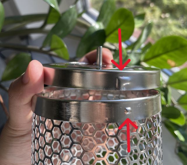 4. Luk cylinderen forsvarligt, og placer den direkte på din grill. Der sidder 2 små "huller" i toppen af cylinderen hvor låget kan sidde i spænd.